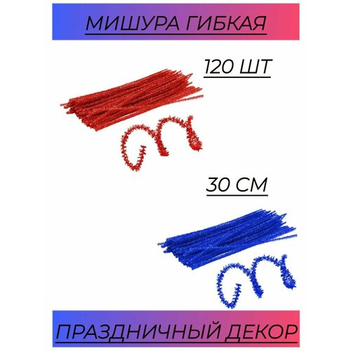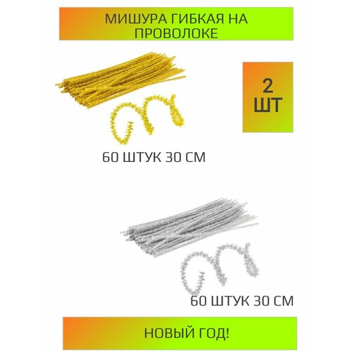 Мишура гибкая на проволоке 60 шт(30 см) 2 штуки для рукоделия, новогодний декор новый год