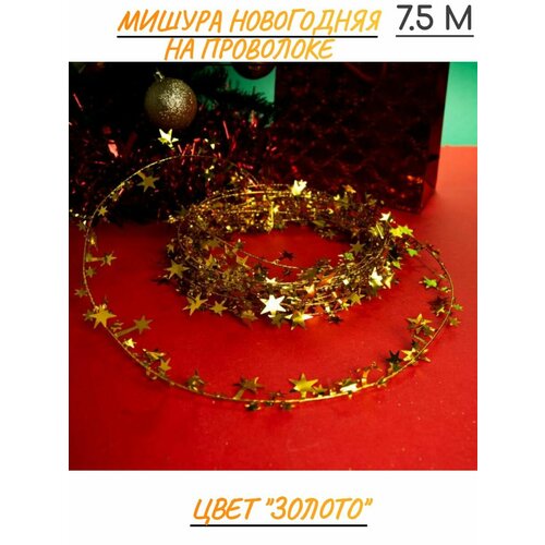 Мишура новогодняя на проволоке 7,5 м, новогодний декор