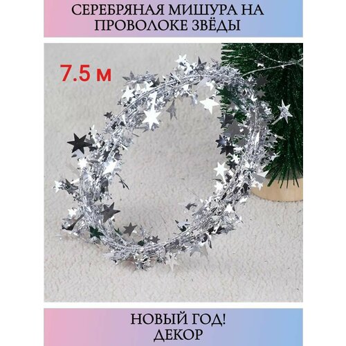 Мишура новогодняя на проволоке 7,5 м цвет серебрестый , новогодний декор