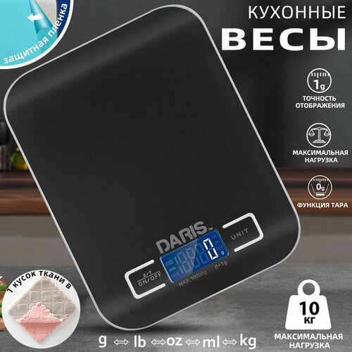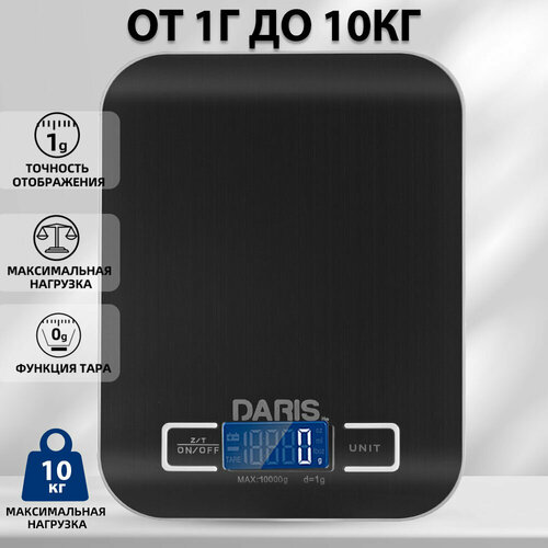Электронные кухонные весы DARIS, от 1 до 10кг, черные