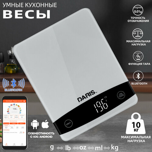 Кухонные электронные весы DARIS для измерения калорий с bluetooth на батарейках