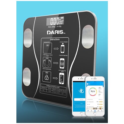 Умные напольные весы DARIS, iPhone, Android, черные электронные напольные весы