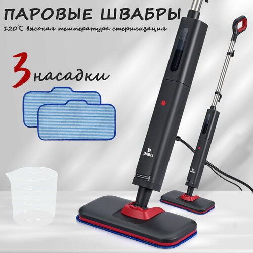 Паровая швабра DARIS черная, 3 насадки в комплекте