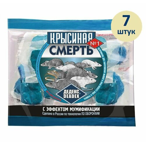 Крысиная смерть №1 Deadex (Дедекс) Средство для борьбы с крысами, мышами. Приманка для грызунов, тесто-брикеты 100 г (7 ШТ)