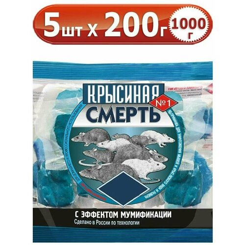 Средство от грызунов крысиная смерть №1 в мягких брикетах 200 г. - 5 шт.