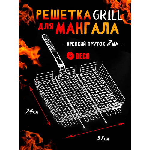 Решетка гриль для барбекю 31*24*5см (длина 67 см, толщина прута 2мм)