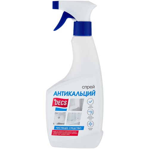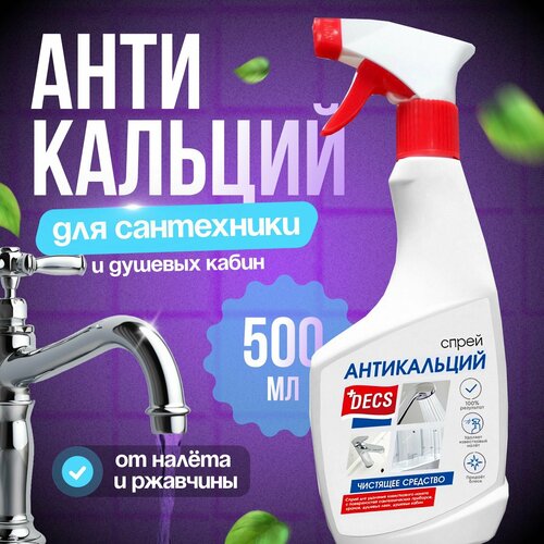 Антикальций спрей Decs, 500 мл, чистящее средство от известкового налёта для душевых кабин кранов и унитазов
