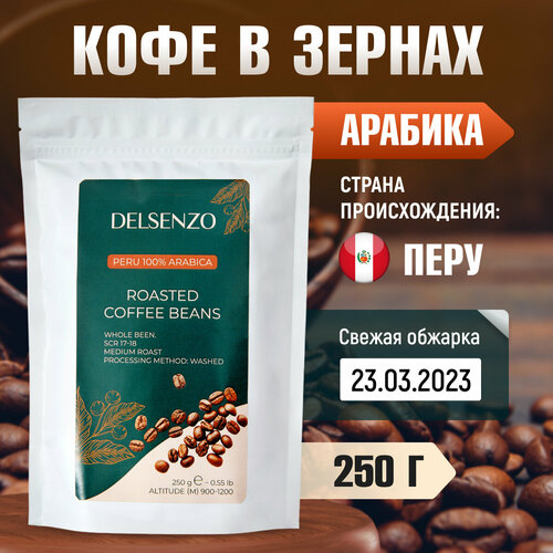 Кофе в зернах Delsenzo/Дельсензо, арабика 100%, Перу, кофе зерновой, 250 г, средней обжарки, свежеобжаренный, премиум качество