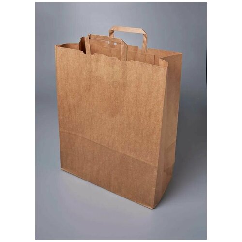 Крафт пакет бумажный 35х15х45 см, бурый с плоскими ручками , 14 шт.
