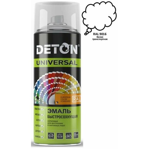 Эмаль аэрозоль 520мл акрил быстросохн. RAL9016 белая транспортная арт. DTN-A07261 Deton Universal (арт. 717313)