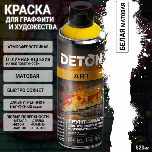 Краска для граффити и дизайна БЕЛАЯ матовая универсальная DETON ART (аэрозоль, 520мл)
