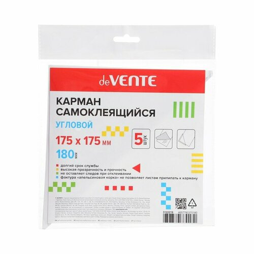 Карман самоклеящийся угловой 175*175 мм deVENTE, комплект 5шт, угловой 3122219 9330111