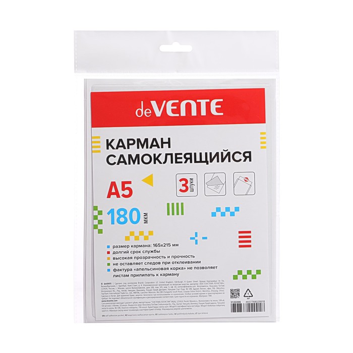 deVENTE Карманы самоклеящиеся 165 х 215 deVENTE, комплект 3 штуки 100053842647