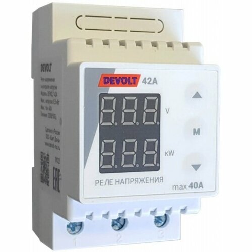 Реле напряжения и контроля мощности нагрузки DEVOLT -42А, 40A