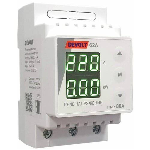 Реле напряжения DEVOLT-62A с функцией контроля мощности, 80А, 17.5 кВт