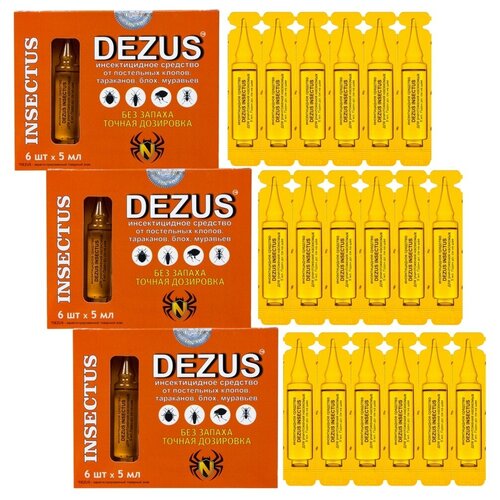 Средство Dezus (Дезус) Insectus от клопов, тараканов, блох, муравьев, 6 ампул 3 шт