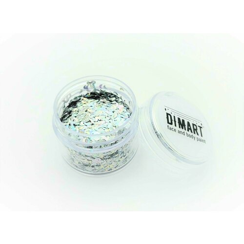 Глиттер сухой 'Dimart' серебряный голографический в форме месяца 30мл.