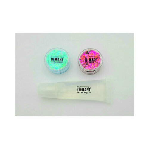 Набор гель-блесток Dimart 2*5гр + праймер 12мл 'Голубые-Малиновые'