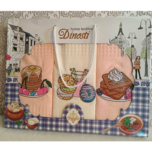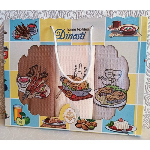 Набор кухонных полотенец в коробке 3 штуки 47*60 см 100% хлопок вафельное