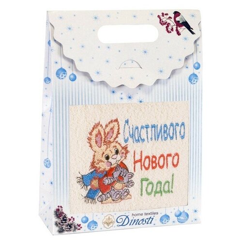 Полотенце новогоднее махровое Счастливого Нового Года! размер 40х70см, цвет белый, махра 380г/м, 100% хлопок