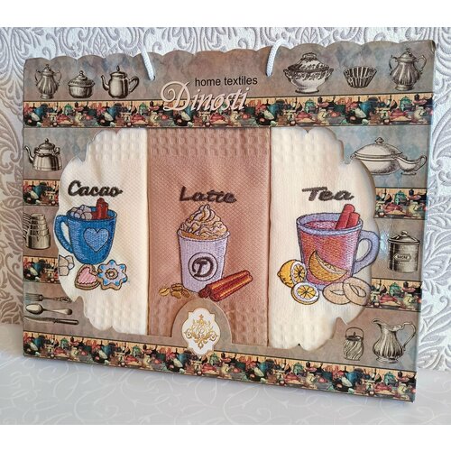 Набор кухонных полотенец в коробке 3 штуки 47*60 см 100% хлопок вафельные