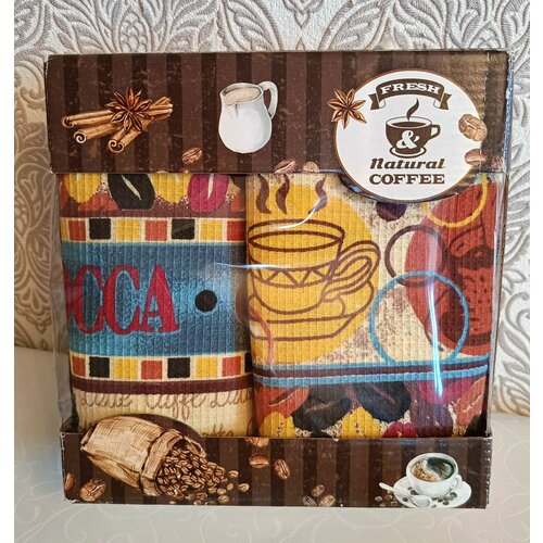 Набор кухонных полотенец в коробке 2 штуки 35*55 см 100% хлопок вафельное