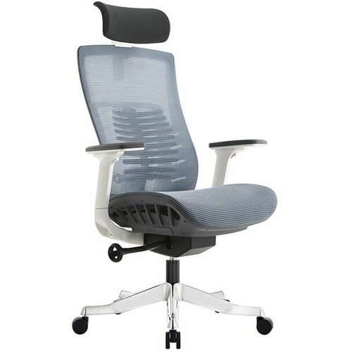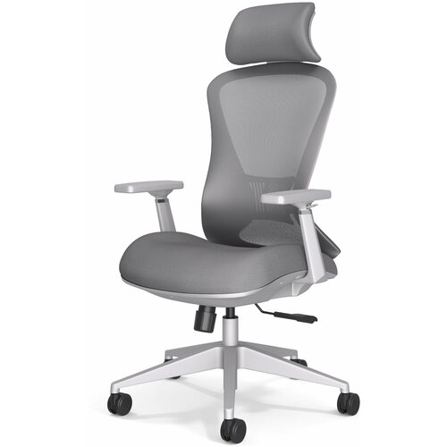 Кресло компьютерное - тесла М, серое на белом пластиковом каркасе
