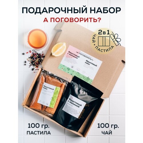 Подарочный набор чай фруктовый с малиной и фруктовая пастила без сахара "А поговорить"