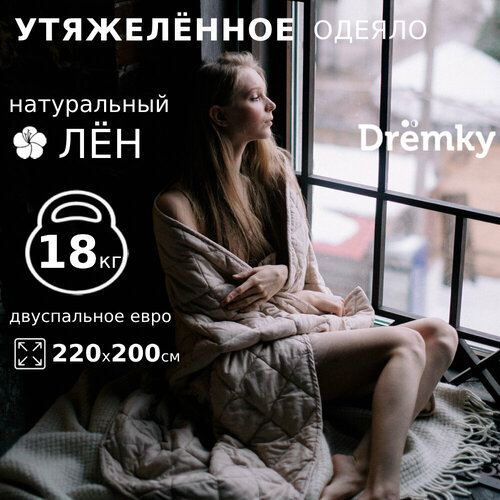 Тяжёлое одеяло Дрёмки евро 200х220, вес 18 кг, натуральный лён и стеклянные гранулы - утяжеленное гравитационное одеяло для улучшения сна 2-спальное