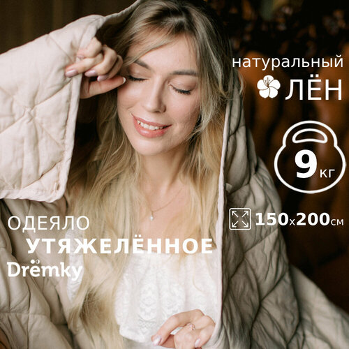 Утяжелённое одеяло для сна Дремки большое, лён + стеклянные гранулы, 150см/200см, 9 кг