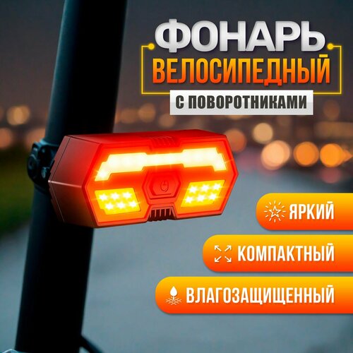 Велофонарь USB задний с поворотниками на пульте управления