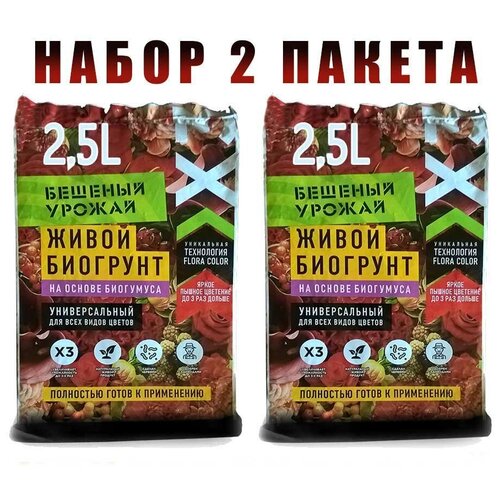 Грунт Универсальный для всех видов цветов. Бешеный Урожай 2.5л. Набор два пакета