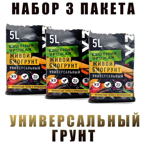 Грунт Универсальный . Бешеный Урожай 5л. Набор три пакета