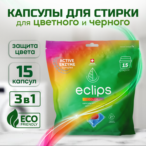 Капсулы для стирки 3 в 1 Eclips Color для цветных и темных тканей (15 шт)