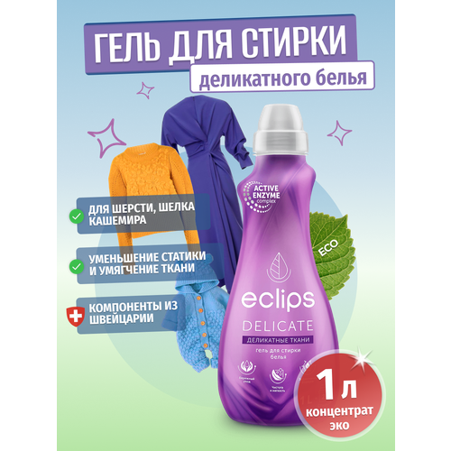 Гель для стирки шерсти и шелка Eclips Delicate 1000 мл (жидкий порошок)