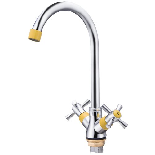 Смеситель для кухни EKKO E49118-9 с высоким изливом с цветным наконечником и ручками (жёлтый)