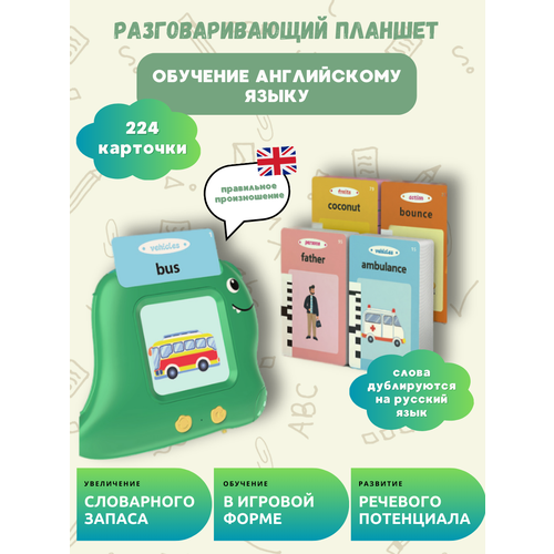 Интерактивная детская игрушка развивающий говорящий планшет с карточками для изучения английского языка Динозавр, цвет: