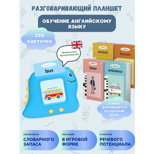 Интерактивная детская игрушка развивающий говорящий планшет с карточками для изучения английского языка Динозавр