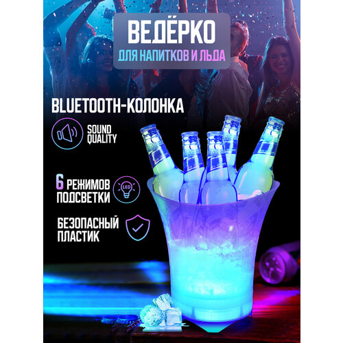 Ведро для льда и шампанского с Bluetooth колонкой и подсветкой, складное
