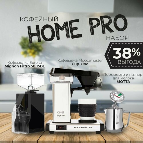Кофейный набор HOME PRO (Кофеварка Moccamaster Cup-one; Кофемолка Eureka Mignon Filtro 50 15BL; Питчер Tulip MOTTA; Термометр для молока MOTTA)