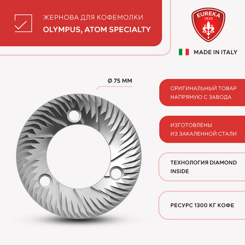 Жернова стальные с технологией diamond inside для кофемолки Eureka Olympus, Atom Specialty, 75 мм, ресурс - 1300 кг