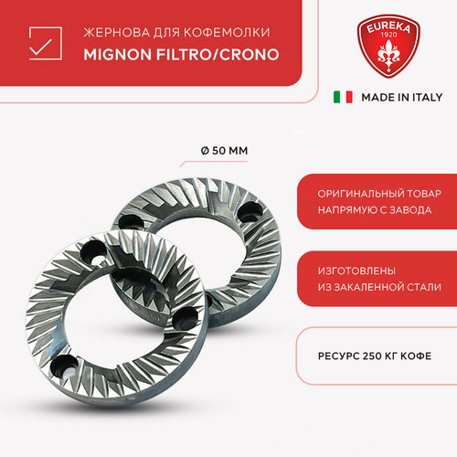 Жернова для кофемолки Eureka из закаленной стали FILTRO 50 мм, ресурс 250 кг кофе