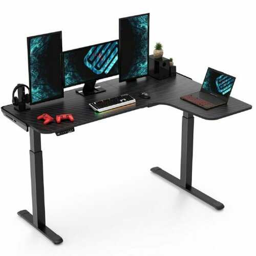 Стол для для компьютера (для геймеров) EUREKA L-формы c электрической регулировкой по высо ERK-EGD-L60L-B-US