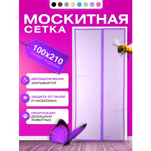 Сетка москитная на магнитах для двери / шторка антимоскитная от комаров дверная / Фиолетовый 100x210