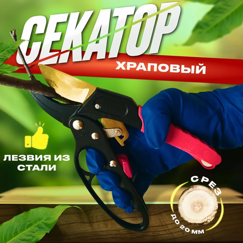 Секатор плоскостной / кусторез / для обрезки веток / сучкорез / ножницы для сада / секатор садовый / с храповым механизмом / для цветов