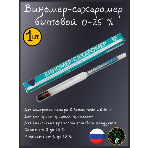 Виномер-сахаромер бытовой (0-18% спирт, 0-25% сахар) 1 шт.