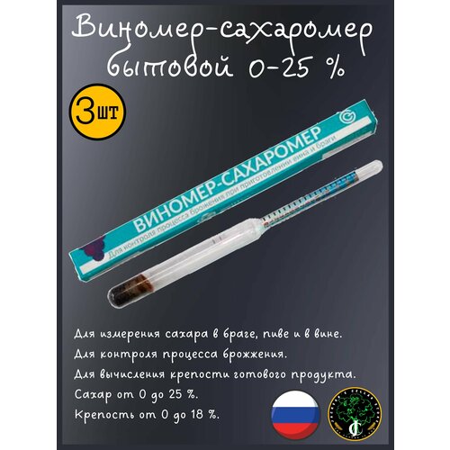 Виномер-сахаромер бытовой (0-18% спирт, 0-25% сахар) 3 шт.