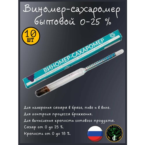Виномер-сахаромер бытовой (0-18% спирт, 0-25% сахар) 10 шт.