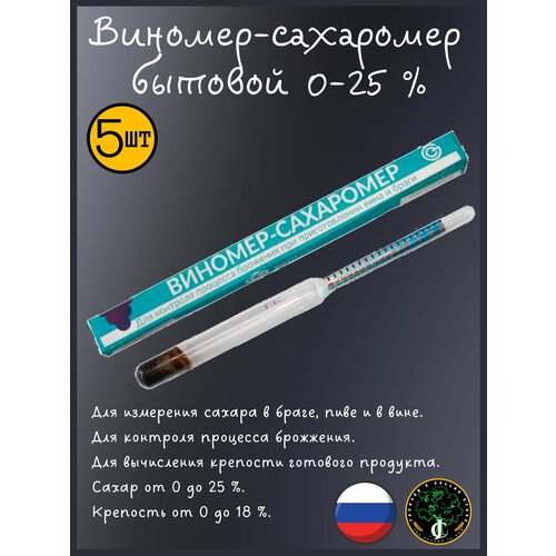 Виномер-сахаромер бытовой Ареометр (0-18% спирт, 0-25% сахар) 5 шт.