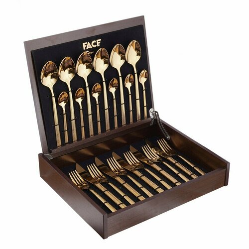 Набор столовых приборов Face 24 предмета на 6 персон Falperra Gold в деревянной коробке (F-FG_24-AL)